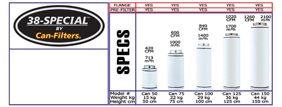 The 38 Special is designed for comercial and light industrial odor and pollution control. Rated at 0.08 sec. contact time at max CFM.